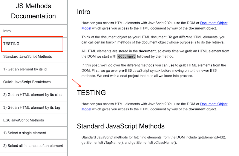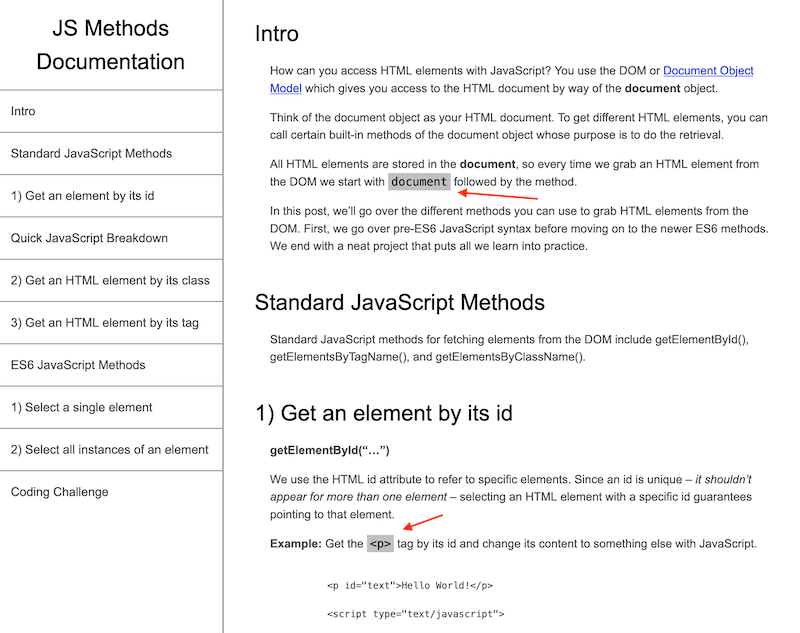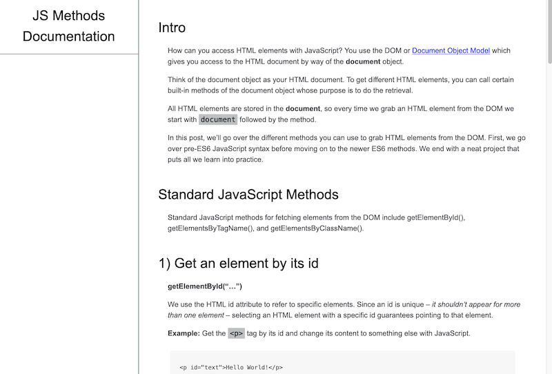To create a technical documentation app similar to fCC’s, I’ll be using our post 5 Ways To Access HTML Elements With JavaScript.